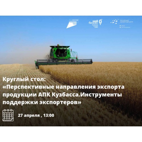 27 апреля 2023г., региональный Центр поддержки экспорта проводит круглый стол «Перспективы направления экспорта продукции АПК Кузбасса. Инструменты поддержки экспортеров». Мероприятие проходит в рамках национального проекта «Малое и среднее предпринимательство и поддержка индивидуальной предпринимательской инициативы» К участию в круглом столе приглашаются руководители и сотрудники малых и средних предприятий региона. В рамках мероприятия участникам расскажут о перспективных …