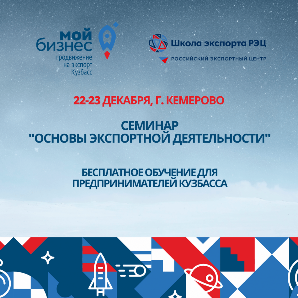 22-23 декабря пройдет первый семинар образовательной программы Школы экспорта Российского экспортного центра для предпринимателей Кузбасса «Основы экспортной деятельности».